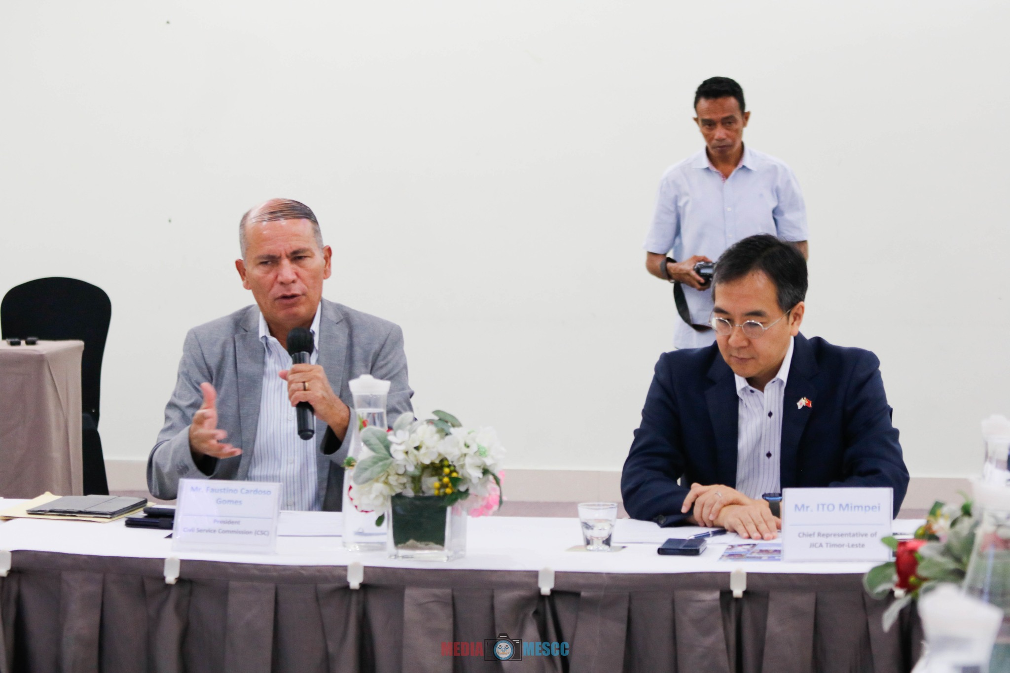 Este programa oferece bolsas de estudo destinadas exclusivamente a funcionários permanentes de instituições governamentais de acordo com o estatuto da função pública de Timor-Leste, para que possam continuar seus estudos no Japão.Participaram nesta reunião representantes das instituições do governo, nomeadamente a Comissão de Função Pública, INAP, MESCC, FDCH, MNEC, JICA e a própria Embaixada do Japão.