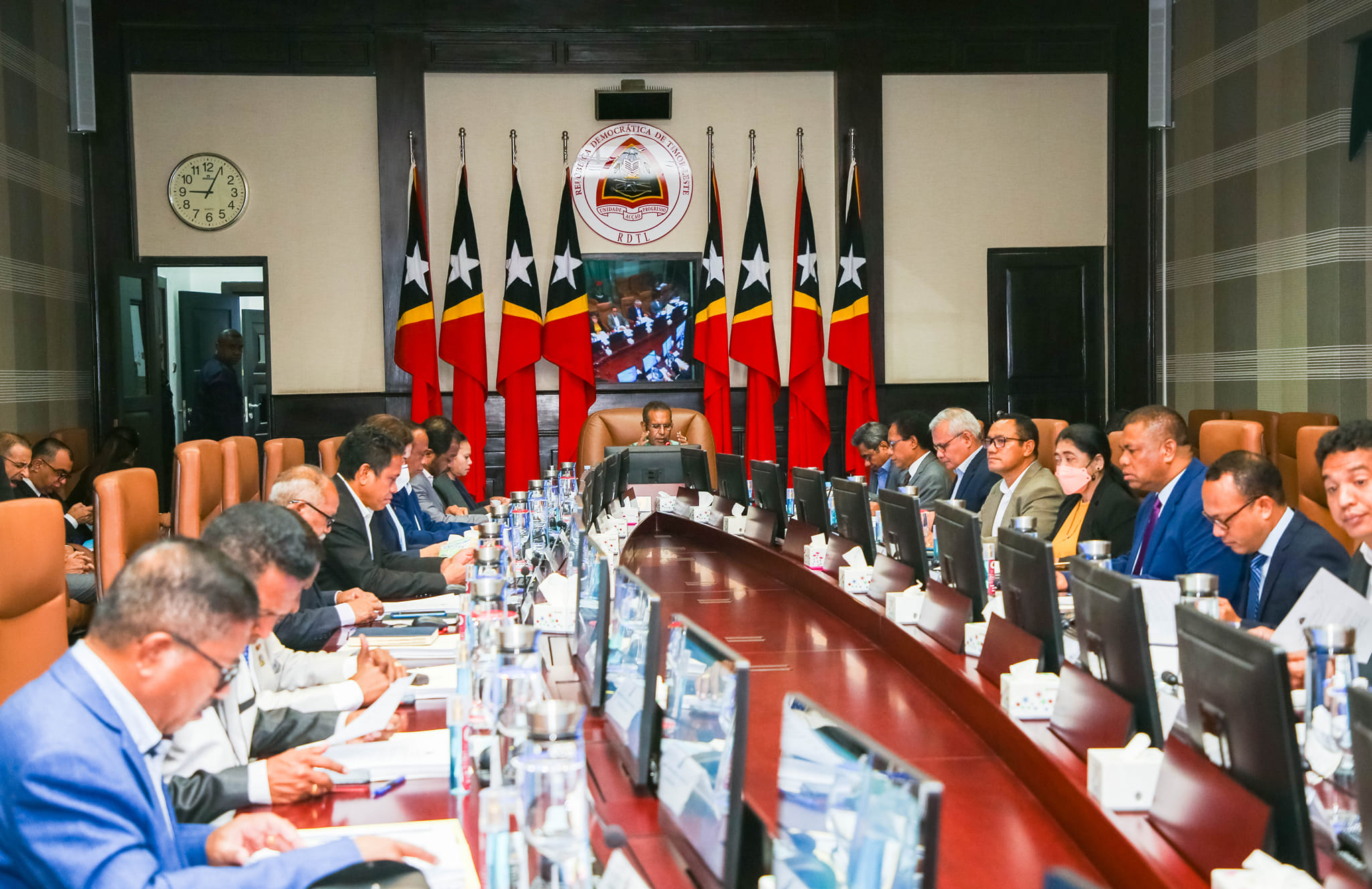 Sua Excelência o Ministro Ensino Superior, Ciência e Cultura (MESCC), Longuinhos dos Santos, participou na Reunião do Conselho de Ministros liderada por S. Exa. Primeiro-Ministro Taur Matan Ruak, que decorreu no Palácio do Governo.