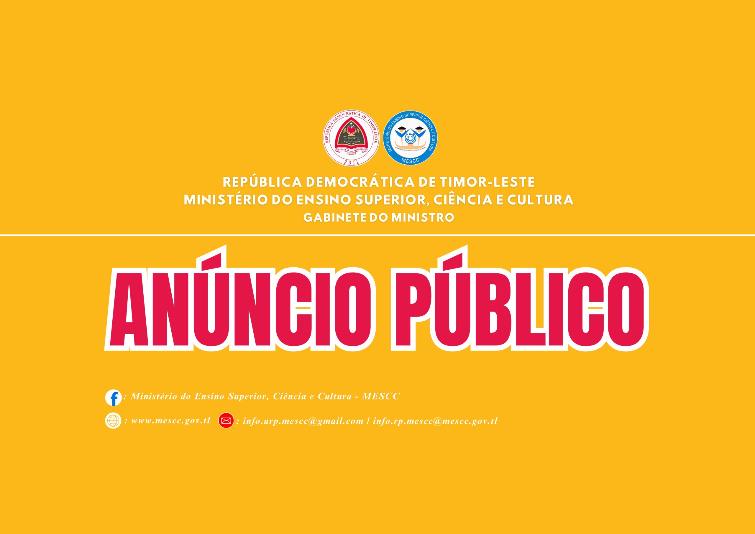 Nos temos do artigo 5.o do Decreto-Lei n.o14/2025, 18 de junho, torna-se público que se encontra aberto o procedimento para apresentação de candidaturas à atribuição de subvenções públicas destinadas aos estabelecimentos de ensino superior públicos e privados em Timor-Leste. O Ministério do Ensino Superior, Ciência e Cultura (MESCC), no âmbito da sua missão de garantir…