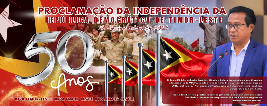 S. Exa. o Ministro do Ensino Superior, Ciência e Cultura, juntamente com os dirigentes e funcionários do MESCC, felicita o Povo de Timor-Leste que, em 28 de novembro de 2025, celebra o 50.º Aniversário da Proclamação da Independência da República Democrática de Timor-Leste. Nesta data histórica, prestamos homenagem a todos os que lutaram pela nossa …