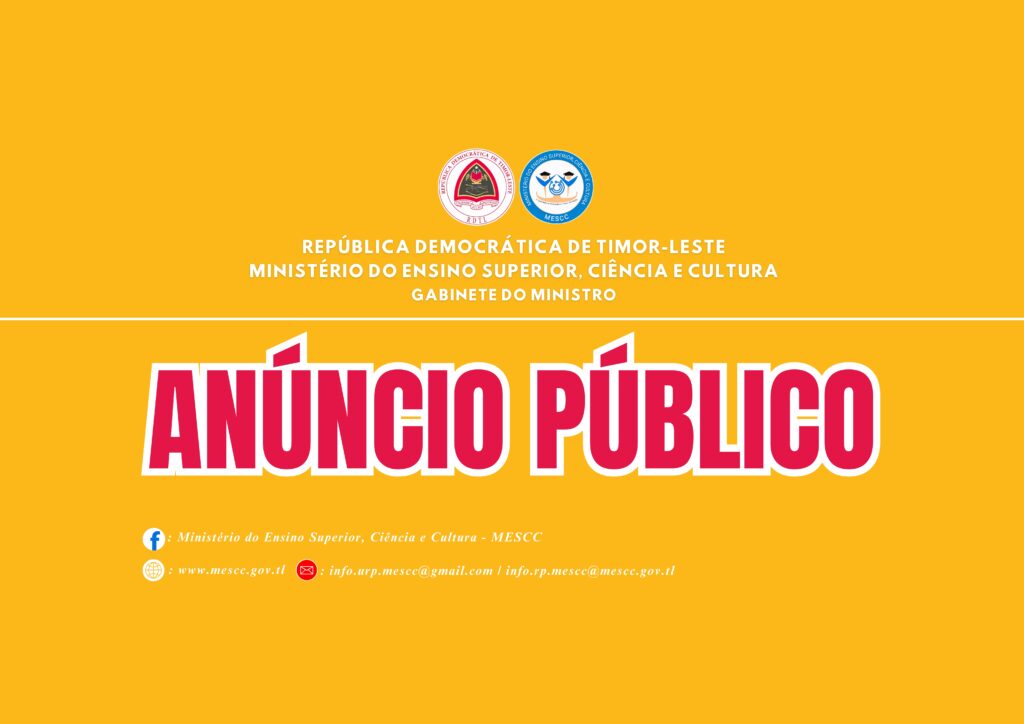 Nos termos do artigo 5.o do Decreto-Lei n.o 14/2025, de 18 de junho, torna-se público que se encontra aberto o procedimento para apresentação de candidaturas a atribuição de subvenções públicas destinadas aos estabelecimentos de ensino superior públicos e privados em Timor-Leste. O Ministério do Ensino Superior, Ciencia e Cultura (MESCC), no quadro da sua missão …