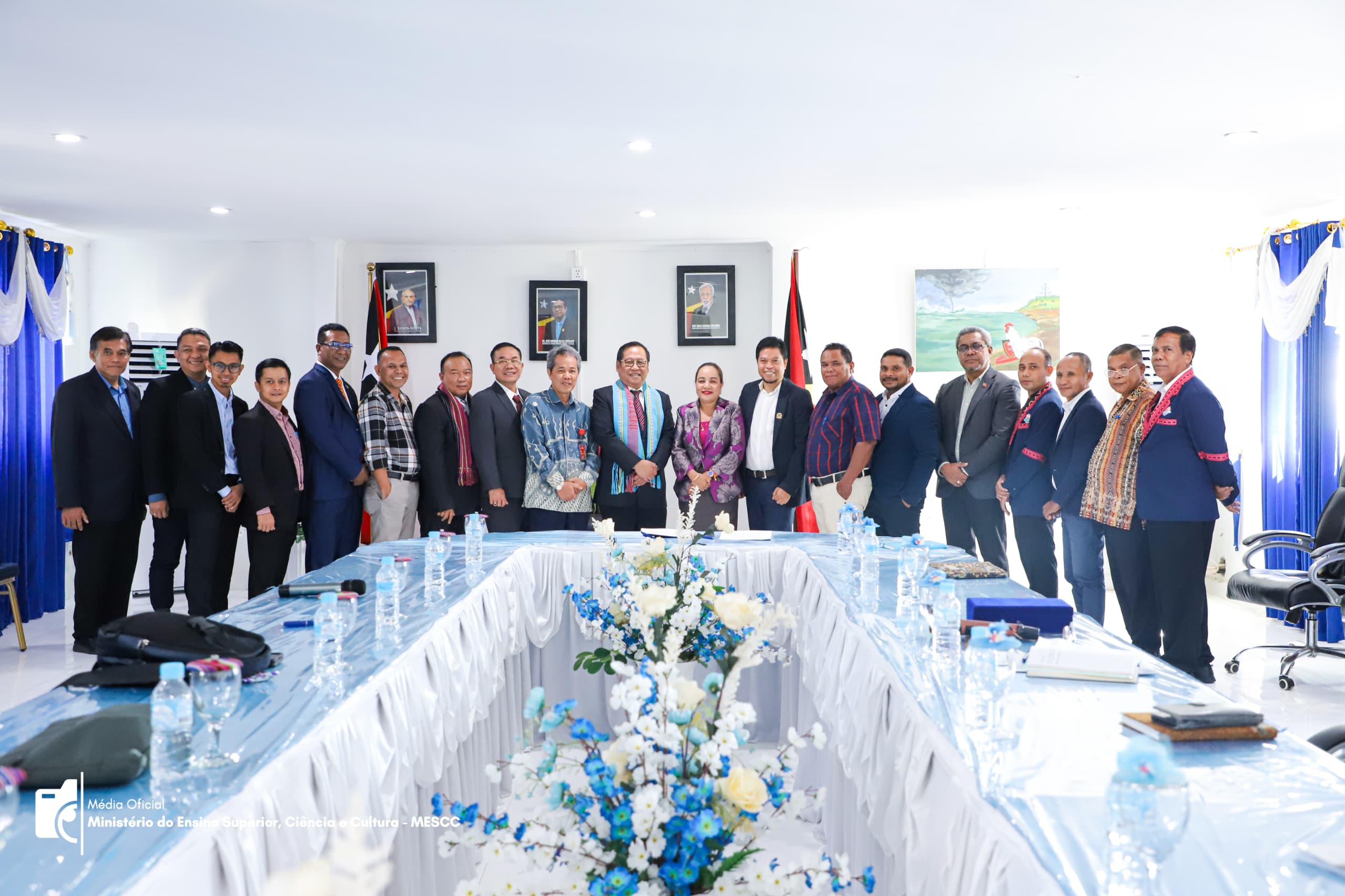 Díli, 17 de junho de 2025 – O Ministério do Ensino Superior, Ciência e Cultura (MESCC), representado pela Chefe de Gabinete Interina, Sra. Teresa Maria de Carvalho, recebeu uma delegação da Universidade Terbuka (UT) da Indonésia, liderada pelo Dr. Mohamad Yunus.