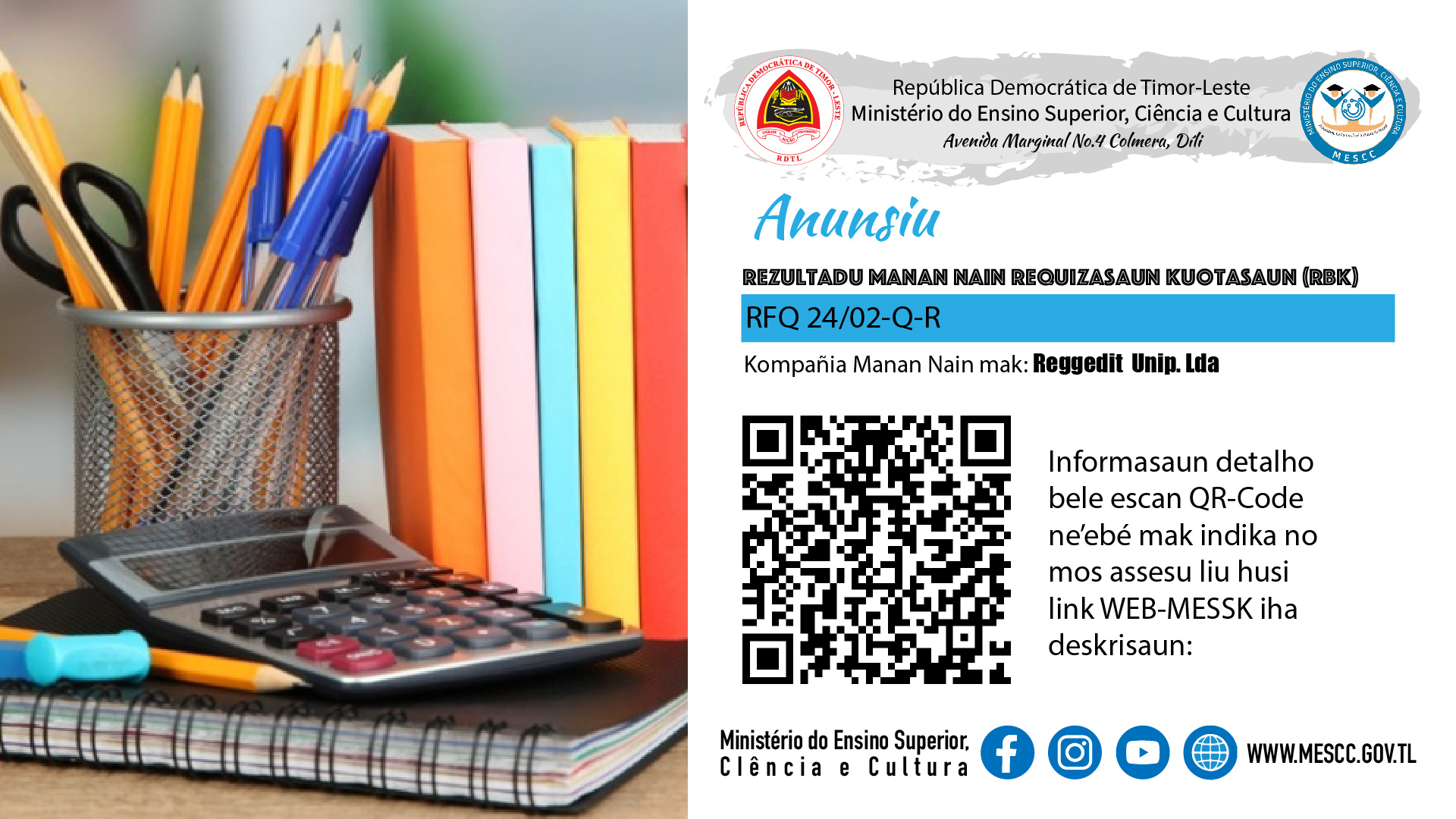 Ministério do Ensino Superior, Ciência e Cultura (MESCC) liu husi Unidade de Parcerias e Cooperação (UPC), informa ba publiku katak Embaixada Timor Leste iha Portugal fo informasaun ba Timor Oanne’ebé iha potensia no kualifikadu hodi kontinua estudu iha Universidade sira iha Portugal, liu husi Programa Regime Especial- G para Nacional de Timor-Leste Informasun detalha bele…