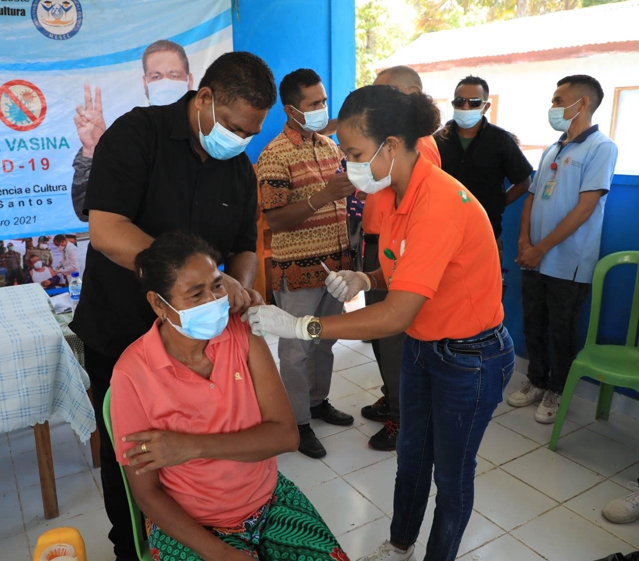 S. Exa. Ministru Ensinu Superior, Siénsia no Kultura, (MESSK), Longuinhos dos Santos no ekipa, akompaña mós husi ekipa mediku sira, kontinua hala’o kampaña vasinasaun kontra Covid-19, ba komunidade sira iha Aldeia Tatoluli, Suku Manapa, Postu Administrativu Cailaco, Munisípiu Bobonaro.Sr. Ministru fó motivasaun ba komunidade sira hodi simu vasina atu aumenta imunidade kontra COVID-19 no mós…