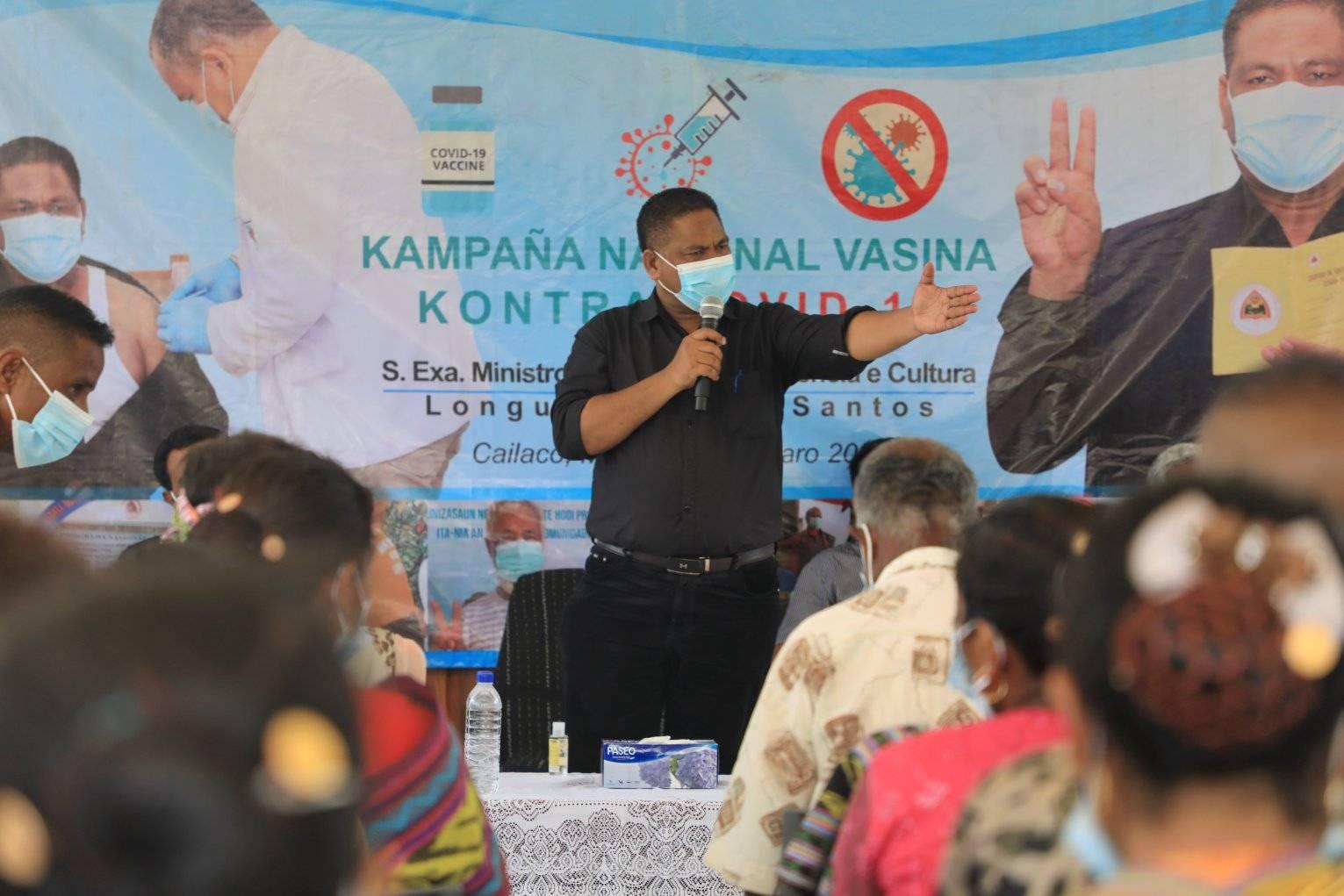 S. Exa. Ministru Ensinu Superior, Siénsia no Kultura, (MESSK), Longuinhos dos Santos no ekipa, akompaña mos husi ekipa médiku sira, hala’o kampaña vasinasaun kontra Covid-19, iha Suku Goulolo, Postu Administrativu Cailaco, Munisípiu Bobonaro.Sr. Ministru deklara katak “Governu nia misaun prinsipál no preokupasaun mak populasaun nia moris diak. Tan razaun ida-ne’e, Governu iha obrigasaun atu proteje…