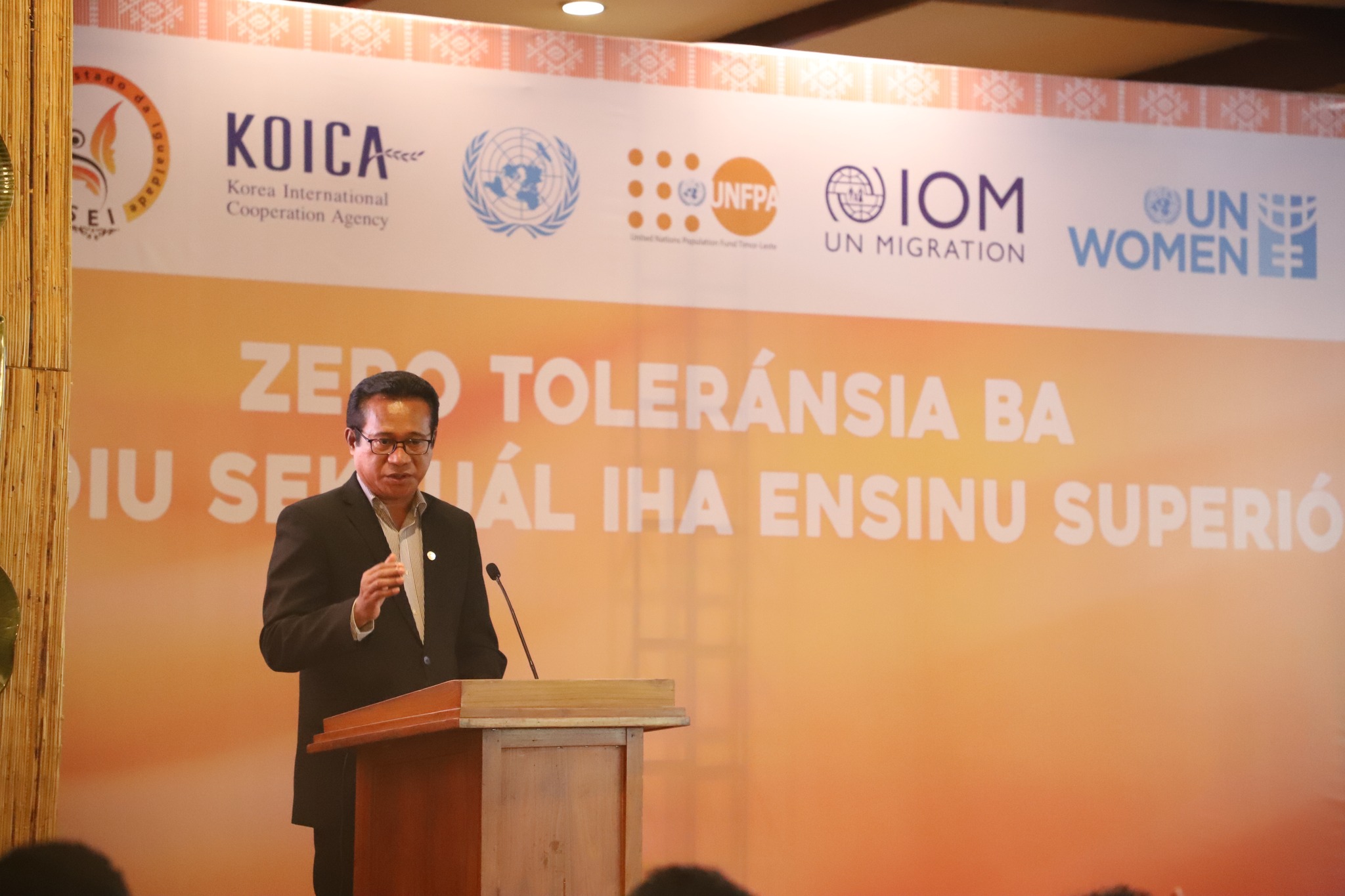Díli, 18/11/2024: S. Exa. Ministru Ensinu Superiór, Siénsia no Kultura, Dr. José Honório, hamutuk ho reprezentantes husi Serkretaria Estadu Igualdade (SEI), KOICA, UM-Woman no Juridika Sosial (JU´s), iha segunda-feira liu ba, halo lansamentu ba programa Estratejia Zero toleransia ba Assedu Sexual ba Instituisaun Ensinu Superiór sira, ne’ebé mak realiza iha Hotel Timor, Díli. Objetivu prinsipal…