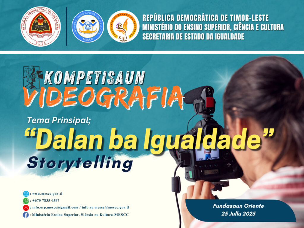 Ba tinan 2025, MESCC ho hanoin ida atu haluan kompriensaun no hasa’e koñesimentu husi estudante ensinu superior sira kona-bá importánsia husi kestaun igualdade jéneru nian prosesu ensinu nomós interasaun iha sosiedade akadémika nian laran, propor atu realiza konkursu “Dalan ba Igualdade-storytelling/Konta istória kona-ba Assunto Igualdade Jeneru”, nebe’e maka sei fo sai realidade husi ema sira nebe’e maka durante iha sira ninian moris loron-loron iha komunidade nian le’et, luta hasoru difikuldade oi-oin, no dala barak, ezerse funsaun ne’ebé maka la tuir sira ninian forsa. Realidade ka luta sira ne’e, presiza atu fo sai hodi nune’e bele hamosu espiritu inkluzaun, justisa, igualdade no respeitu malu entre jeneru sira. Esperiansia moris sira ne’e, sei hatudu liu husi filme dokumentariu ho durasaun minutu sanulu resin lima (15m), no ninian produsaun sei halo husi estudante ensinu superior públiku no privada sira.