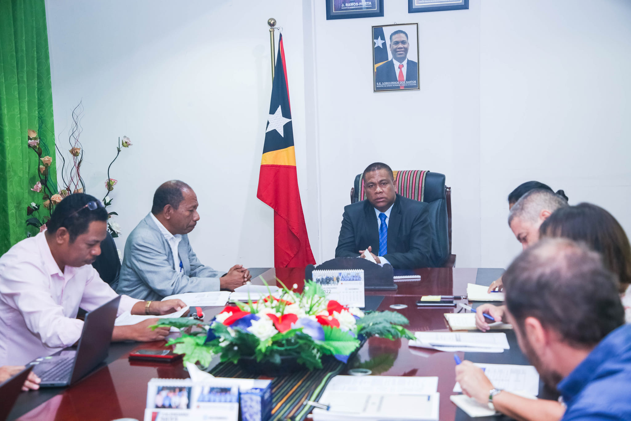 S. Exa. Ministru Ensinu Superiór, Siénsia no Kultura, Longuinhos dos Santos, hala’o sorumutuk ho Magnifiku Reitor UNTL ho ninia ekipa hodi koalia kona-ba kalendáriu implementasaun Rejime Kareira Dosente.