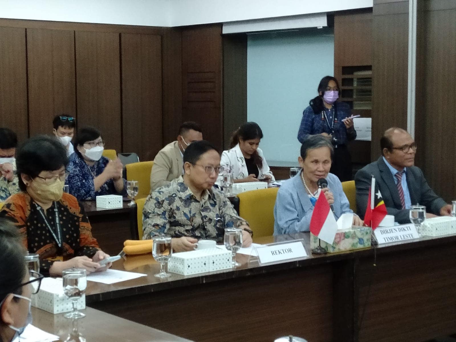 Delegasaun MESCC nian, ne’ebe lidera husi Diretora- Jeral Ensinu Superior no Siénsia, Sra. Filomena Lay, no Diretor Ezekutivu Fundu Dezenvolvimentu Kapital Umanu, Dr. Cristóvão dos Reis, hala’o sorumutuk ho Reitor Universidade Atma Jaya, Dr. Agustinus Prasetyantoko, no ninia estrutura hodi halo diskusaun konaba proposta akordu tekniku iha área bolsa estudu no kapasitasaun rekursu umanu nian.