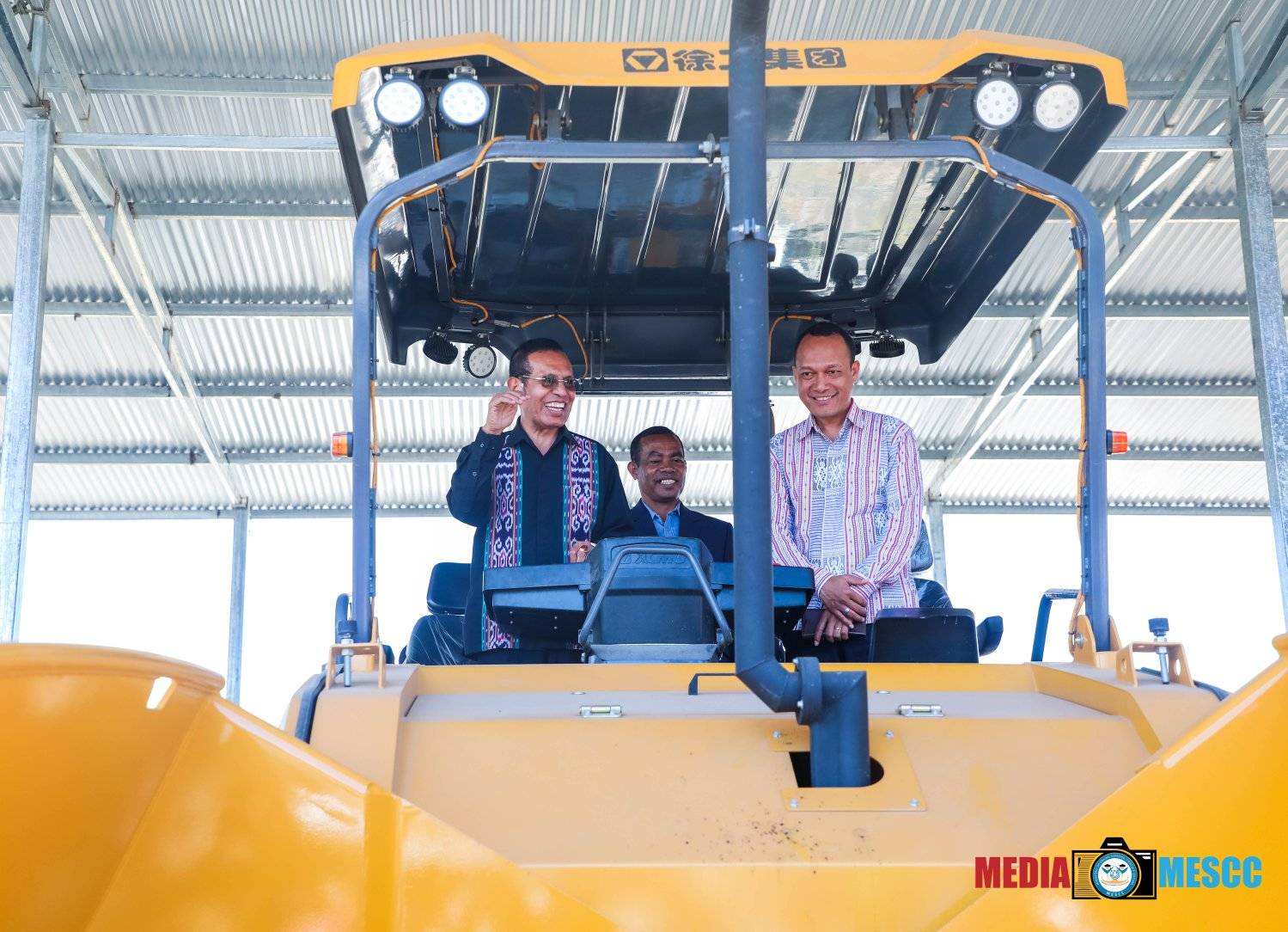 S. Exa. Ministru Ensinu Superiór, Siensia no Kultura, Longuinhos dos Santos, hamutuk ho membru Governu balun akomapaña S. Exa. Primeiru-Ministru Taur Matan Ruak Partisipa iha serimónia entrega ekipamentus pezadu husi kompañia ba iha Institutu Jestaun Ekipamentus (IGE), iha edifisiu IGE Kolmera.