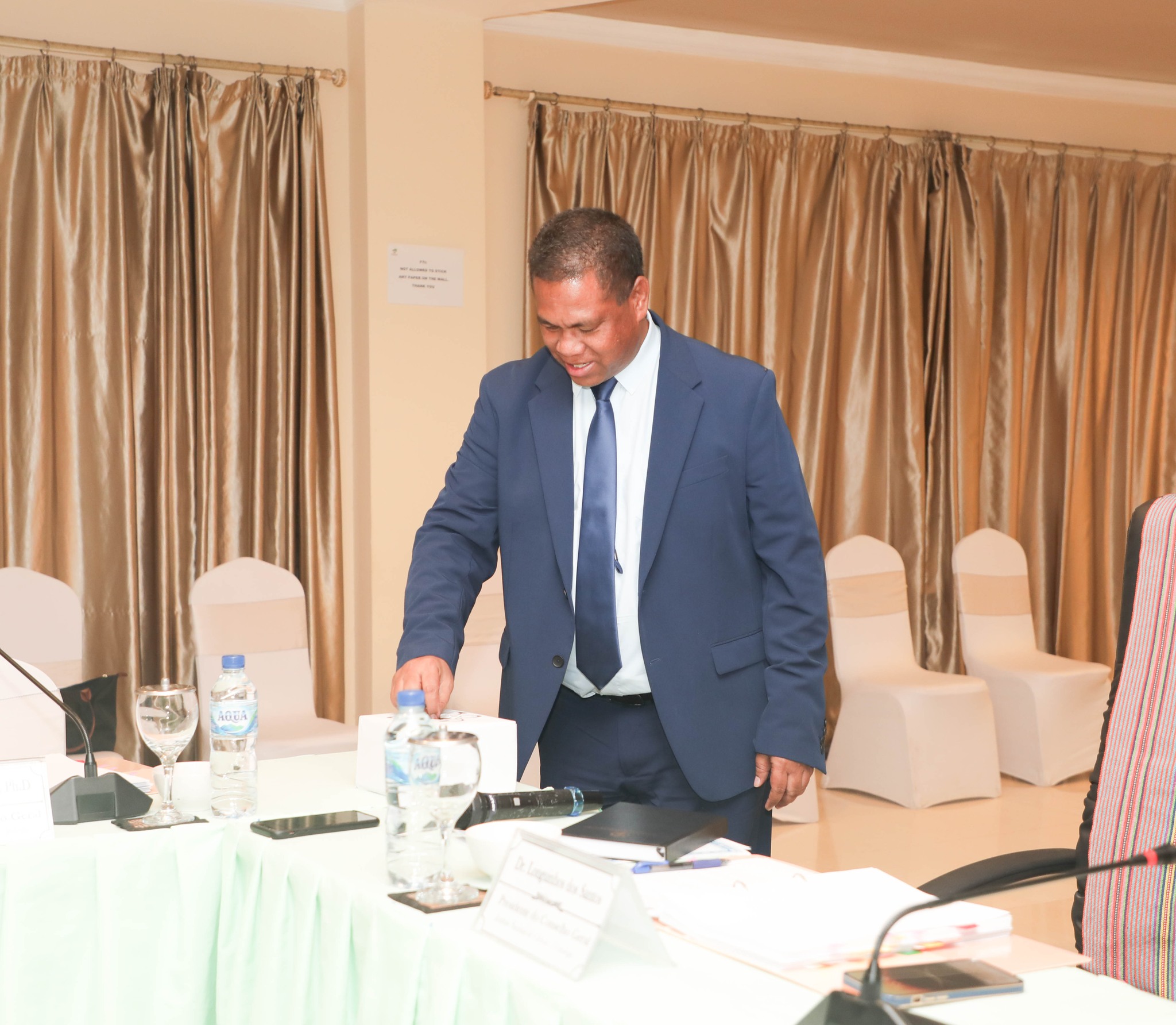 S. Exa. Ministru Ensinu Superiór, Siénsia no Kultura, (MESSK), Longuinhos dos Santos, prezide Eleisaun ba Prezidenti Konsellu Ezekutivu Institutu Nasionál Siénsia Teknologia (INCT, sigla ho portugés) ba períodu 2023-2027, iha salaun JL Villa.